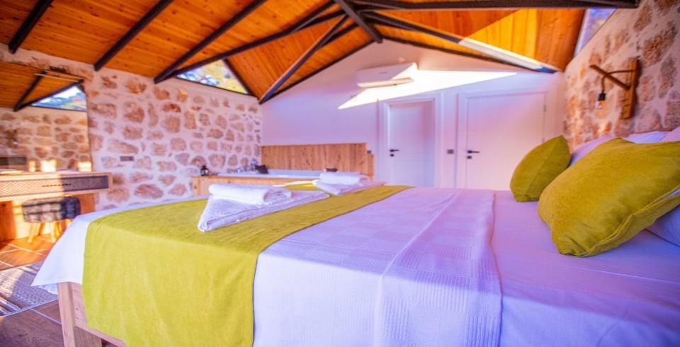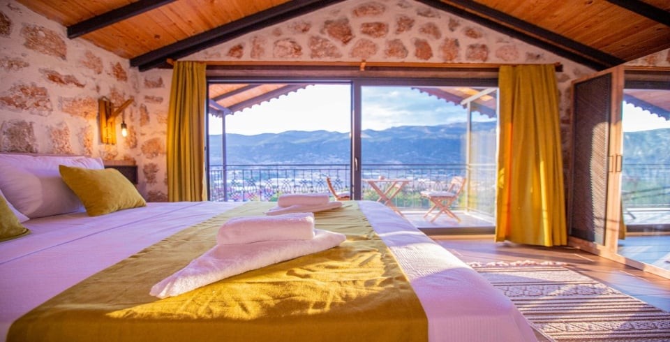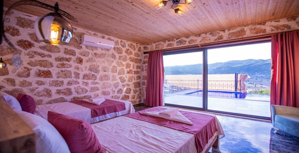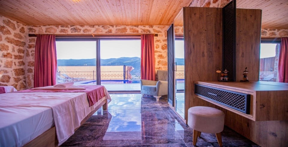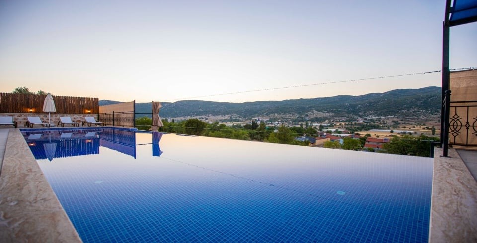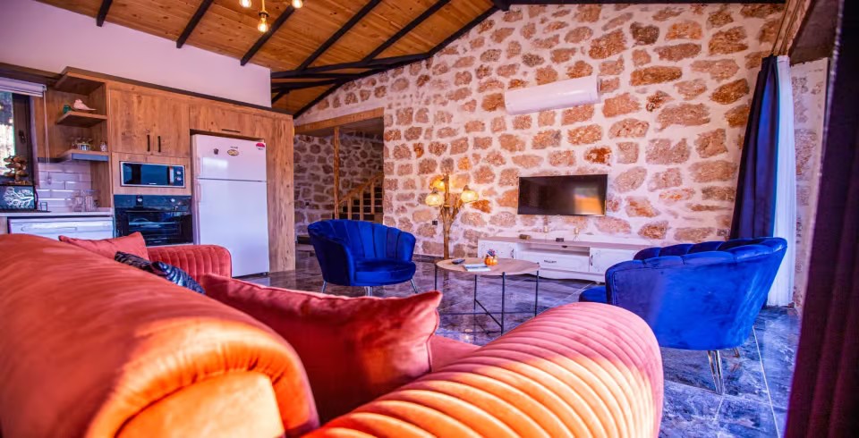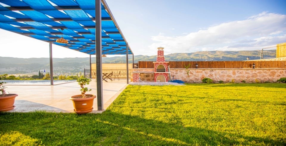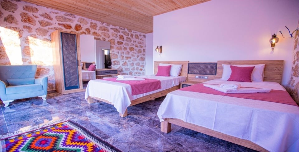 Kalkan Sarıbelen Köy'ünde bulunan kiralık yazlık villa 2 yatak odalı ve 4 kişi konaklama kapasitesine sahiptir. Taş yapıya sahip olan villanın havuz terası oldukça geniş tasarlanmış olup çocuk parkı, salıncak, şezlonglar ve güneş şemsiyesi aynı zamanda mangal yapabilmeniz için barbekü bulunmaktadır. Doğa içerisinde sessiz sakin bir konumda olan Villa Fiesta'nın içerisinde ise suit yatak odaları, jakuzi ve mutfak salon kısmı bulunmaktadır. Amerikan mutfağında yemek yapabilmeniz için tüm araç gereçler mevcuttur. Korunaklı villa olan tatil evi hem balayı çiftleri hem de çocuklu aileler için uygun olup Kalkan merkeze araçla 15 dakikalık mesafede yer almaktadır.