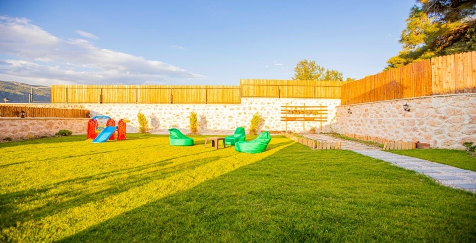 Bahçe : Bahçe içerisinde özel yüzme havuzu, 4 adet şezlong , bahçe mobilyaları, tenis masası , oyun parkı, ayaklı mangal bulunmaktadır.