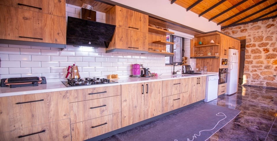 Mutfak : Modern Amerikan mutfak içerisinde 6 kişilik yemek masası , buzdolabı, bulaşık makinası, fırın, ocak, mikrodalga fırın, tost makinası, yemek masası, yemek takımları, çatal ve bıçak takımları, tencere ve tava takımları, bardaklar bulunmaktadır.