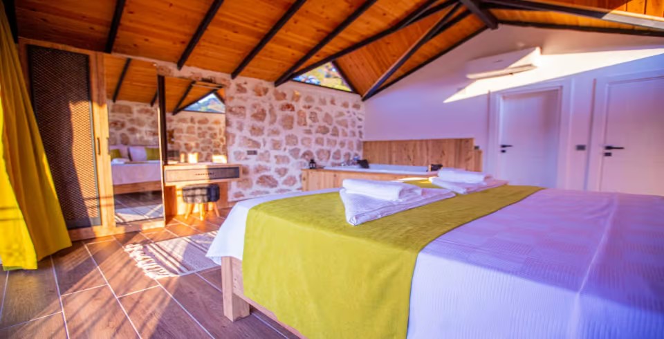1. Yatak Odası : 1 adet çift kişilik yatak, klima , komodin, elbise dolabı, makyaj masası, jakuzi, banyo ve tuvalet bulunmaktadır.