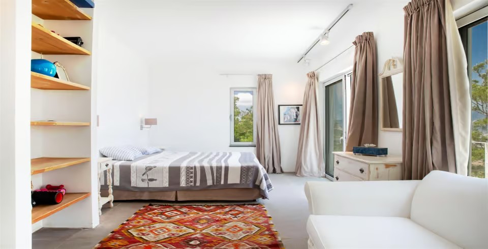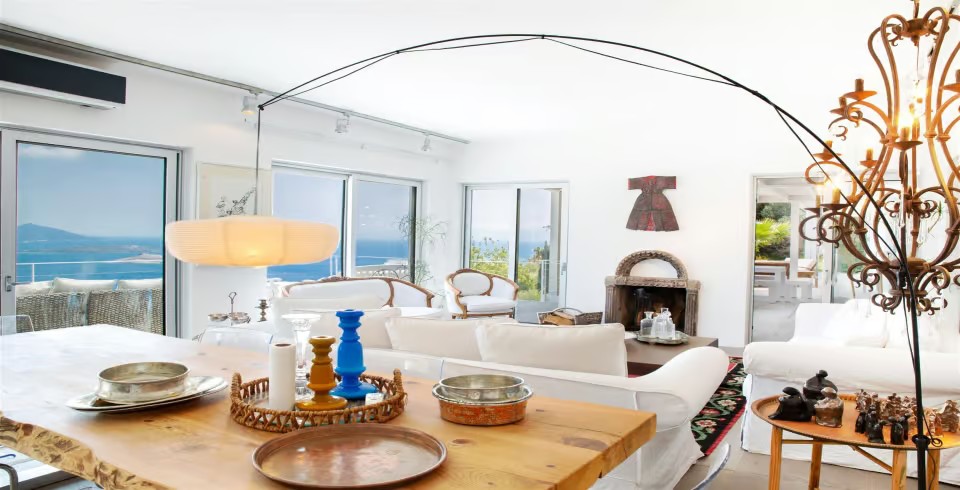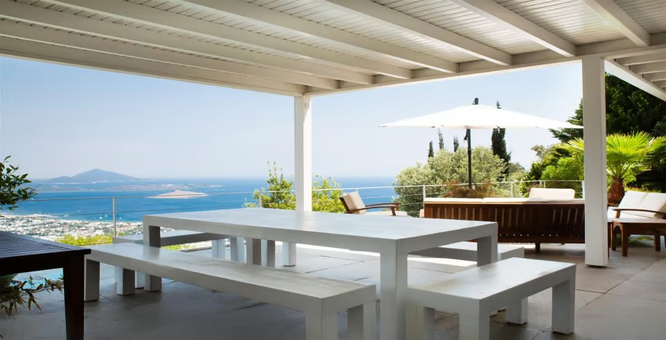 Bodrum Yarımadası'nın kalbinde yer alan bu eşsiz villa, sadece deniz, kum ve güneşin değil; aynı zamanda Ege mutfağının meşhur balık restoranlarının da tadını çıkarabileceğiniz mükemmel bir lokasyona sahiptir. Villanın salonundan çıkılan geniş terasta, göz kamaştıran deniz manzarasına karşı sabah kahvenizi yudumlayabilir veya akşam yemeklerinizi keyifle yiyebilirsiniz.