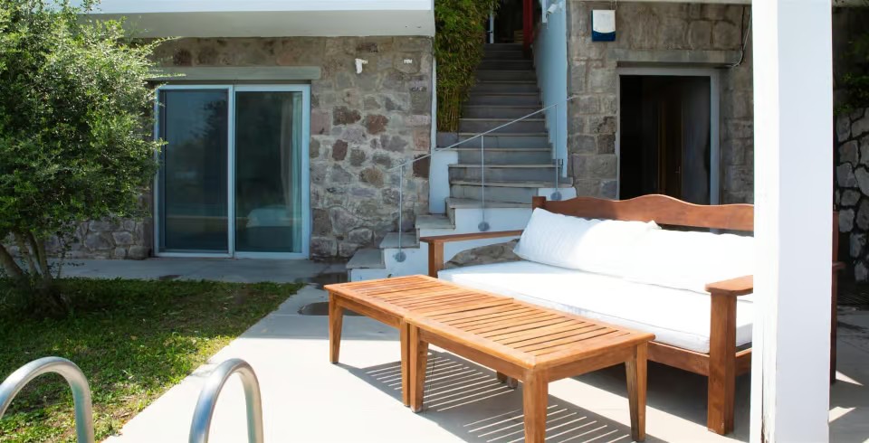 Bahçe: Özel bahçede yüzme havuzu, güneşlenme alanı, duş, şezlong, şemsiye, bahçe masası ve barbekü bulunmaktadır.