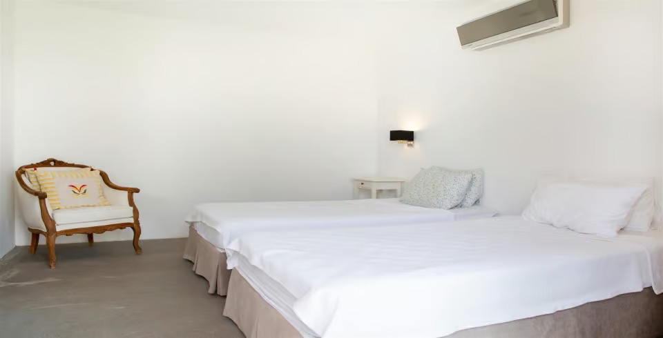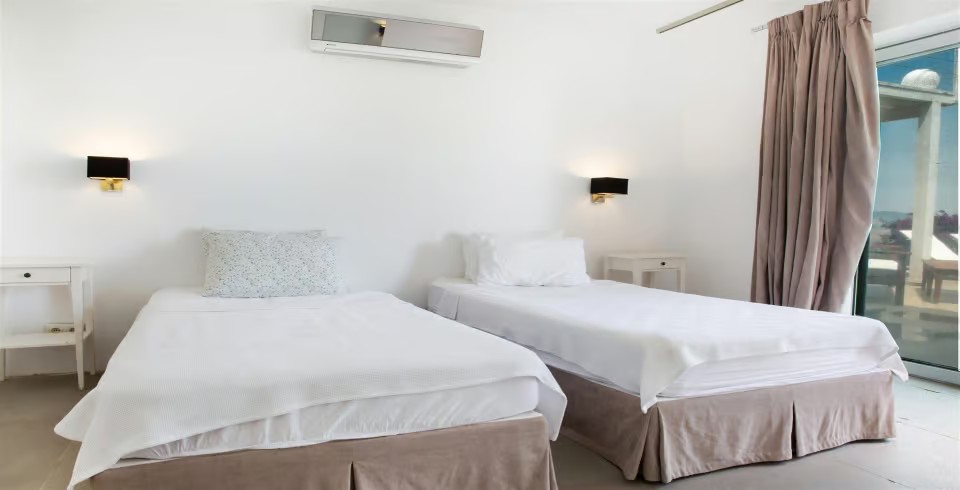 Yatak Odası: 2 adet tek kişilik yatak, klima (Bahçe katında mini mutfak ve oturma alanı ile)