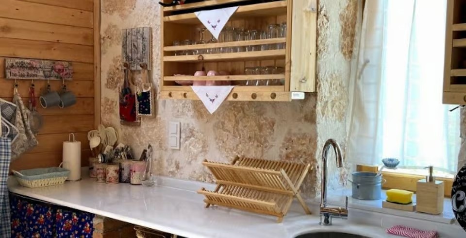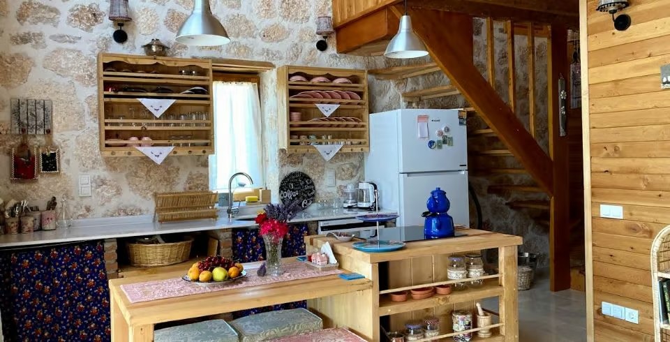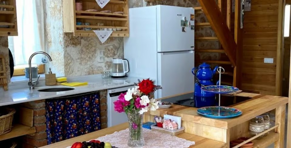 Mutfak : Sade bir yaklaşımla tasarlanan açık mutfağınızda, bahçenizden ve yakın çevrenizden bulabileceğiniz taze ve organik ürünlerle keyifli yemekler yapabilmeniz için ihtiyacınız olan her imkana sahipsiniz. Mutfak sohbetleri yapabileceğiniz 4-5 kişilik masa dışında ahşap verandada yer alan köy ocaklığı ve geniş oturma alanınızda doğayla baş başa odun ateşi keyifleri yaşayabilirsiniz. Mutfağımızda buz dolabı, bulaşık makinası,5 kişilik yemek masası, kaşık ve çatal takımı, tencere ve tava takımı, bardaklar bulunmaktadır.