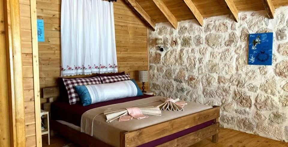 Asma katta harika bir deniz manzarasına hakim, oturma alanı ve özel banyoya sahip bir ebeveyn odası mevcut. Zemin katda ise 2 kişilik bir yatak odası ile 2 çocuk veya 2 yetişkin için yatak olanağı sağlayan geleneksel sedirli bir oturma mekanı bulunmakta. Ebebeyn odası, zemin kattaki 2 kişilik yatak odası ile yatak olarak da kullanılabilen geleneksel sedirleri ile birlikte 6 kişilik konaklama kapasitesine sahip Fıstık Ev. Zemin katta yer alan diğer banyo ve ebeveyn banyosu tüm ihtiyaçlarınızı karşılıyor.