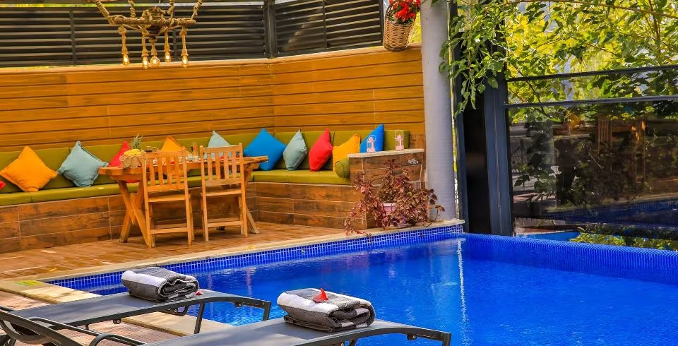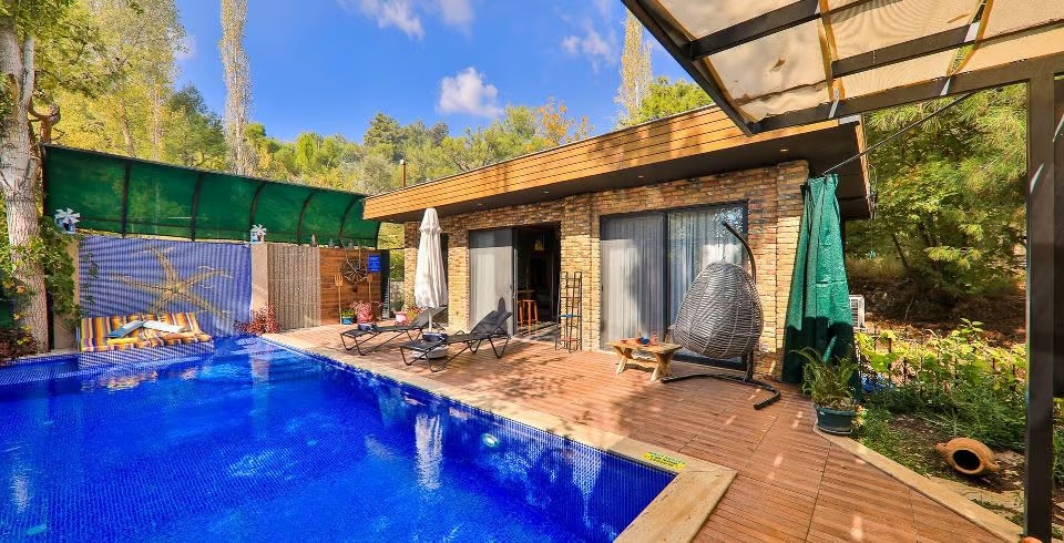 Kalkan’ın İslamlar mevkisin de yer almakta olan muhafazakar, kiralık, yazlık, müstakil villamız ile huzurlu ve sakin bir tatil deneyimi gerçekleştirebilirsiniz. Villa Florya 1 yatak odalı olmasına rağmen geniş bir havuz ve havuz terası bulunmaktadır. Havuz ve havuz terası dışarıdan korunaklıdır, bu sayede rahat tatilinizi geçirebilirsiniz. Her balayı çiftinin hayali olan bu tatil için özenle dizayn edilmiş Villa Florya lüks ama aynı zamanda ekonomi açısından her bütçeden ailelerimize uygundur. Seçeneklerimizden gözde olan villalarımızdandır ve sık tercih edilmektedir. Villamız Kalkan Merkez’e ve plajlara yaklaşık olarak 8 – 10 dakika mesafede bulunmakta olup gayet kolay bir ulaşım sağlamaktadır. Sitemizin fotoğraflarından da gördüğünüz üzere villamızda otantik esintiler bulunmaktadır. Geniş bahçemizde bulunan üstü kapalı oturma grubu ve yemek masası bölümünde sakinliğin tadını çıkarabilirsiniz. Çiftlerimizin son derece memnun kaldığını belirtmek ister, şimdiden sizlere keyifli tatiller dileriz.