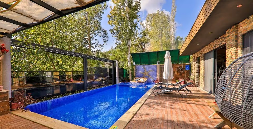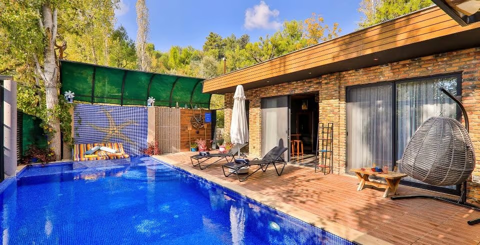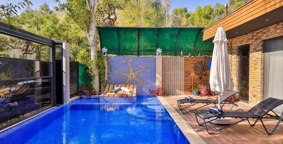 Havuz : Villamızın havuzu ise etrafı dışarıdan görülmeyecek şekilde korunaklı olup sizlere huzurlu ve keyifli havuz deneyimi sunmaktadır. Size özel muhafazakâr yüzme havuzu, şezlong keyfi ve şemsiye ile yazın en güzel günlerinde sizleri bekliyor.