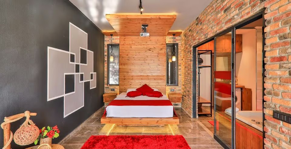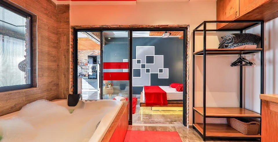 1. Yatak Odası : 1 adet çift kişilik yatak, televizyon, klima, jakuzi, elbise dolabı, makyaj masası, banyo ve lavabo bulunmaktadır.