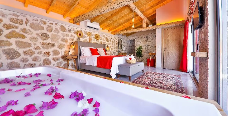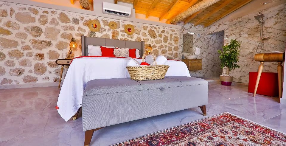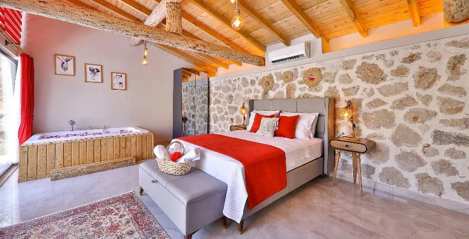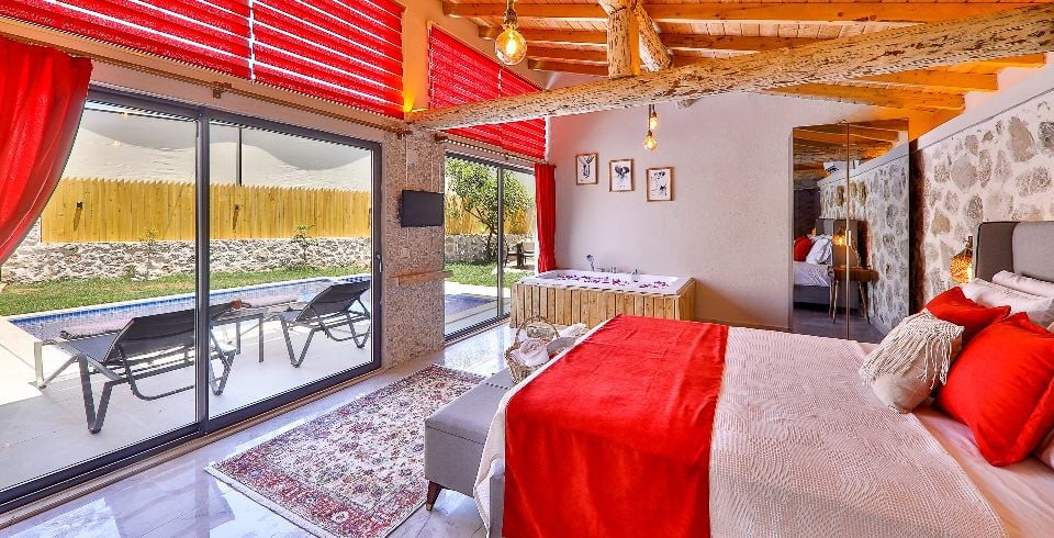 Kiralık yazlık villamız Patara mevkisin de konumlanmıştır. 1 yatak odalı 2 kişilik kapasiteye sahiptir. Taş ve ahşap işçiliği kullanılmıştır. Muhafazakar aileler için uygun özel yüzme havuzu ve havuz terası tamamen korunaklıdır. Balayı çiftlerine özel olarak süit yatak odasında jakuzi hamam , sauna bulunmaktadır . Lüks eşyalar kullanılmıştır. Villamızın tüm odalarından havuz terasında çıkış yapılmaktadır.
