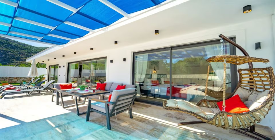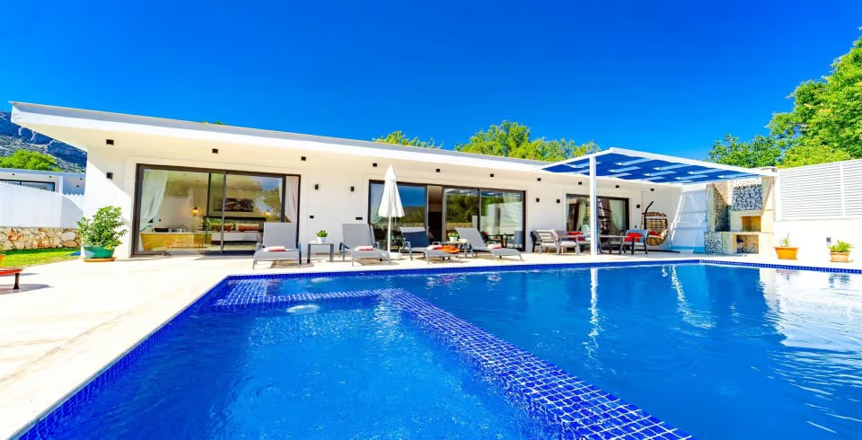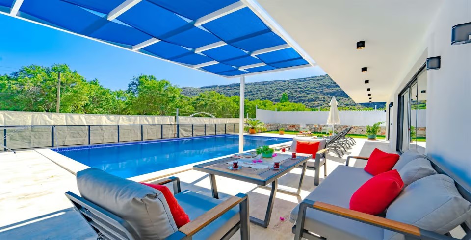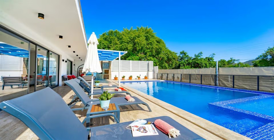 Havuz ve Bahçe : Villamızın havuz terasında şezlong, şemsiye, salıncak, oturma grubu, barbekü, özel yüzme havuzu, bulunmaktadır.