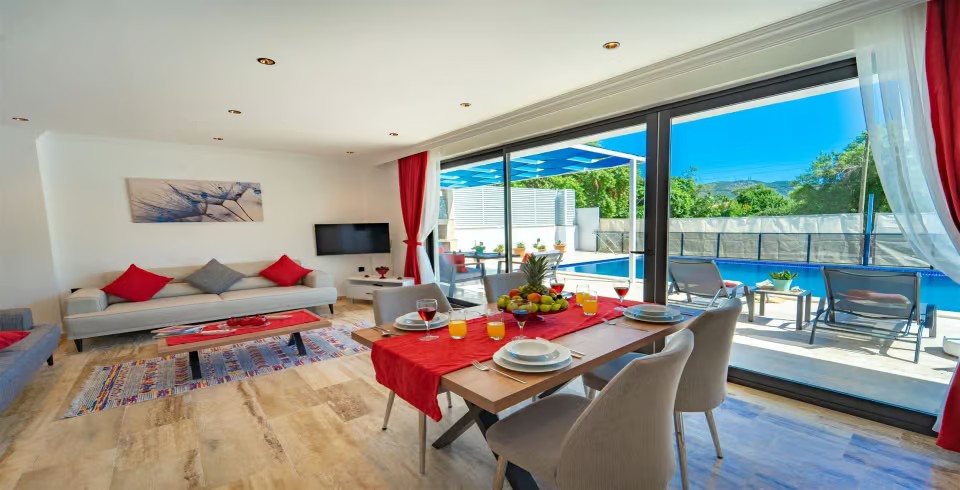 Salon :  Villa salonunda oturma grubu, TV, internet, klima,  sehpa bulunmaktadır.