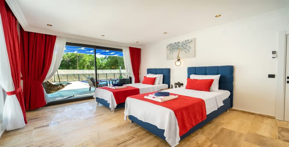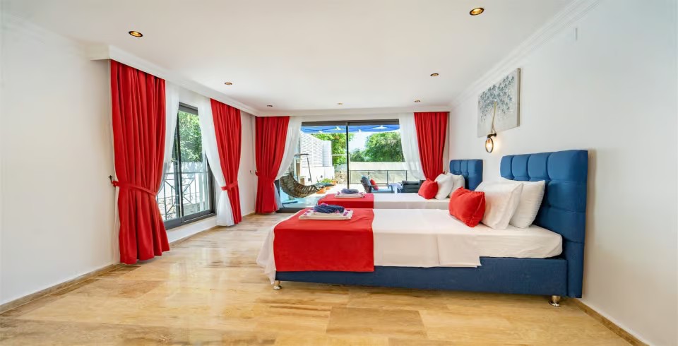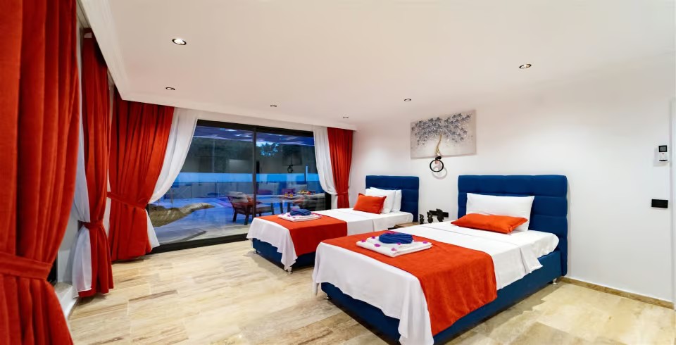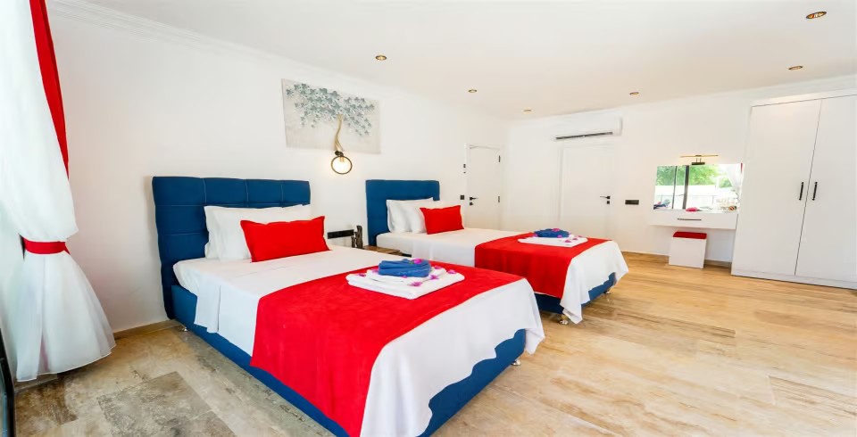 2. Yatak Odası : 2 adet tek kişilik yatak, komodin, klima,  makyaj masası, elbise dolabı, banyo ve lavabo bulunmaktadır.