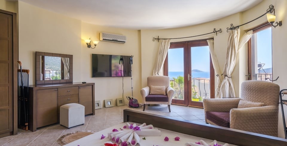 3.Yatak Odası: 1 adet çift kişilik yatak, komodin, klima, elbise dolabı, makyaj masası, banyo ve tuvalet bulunmaktadır.