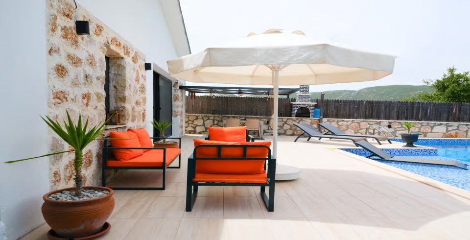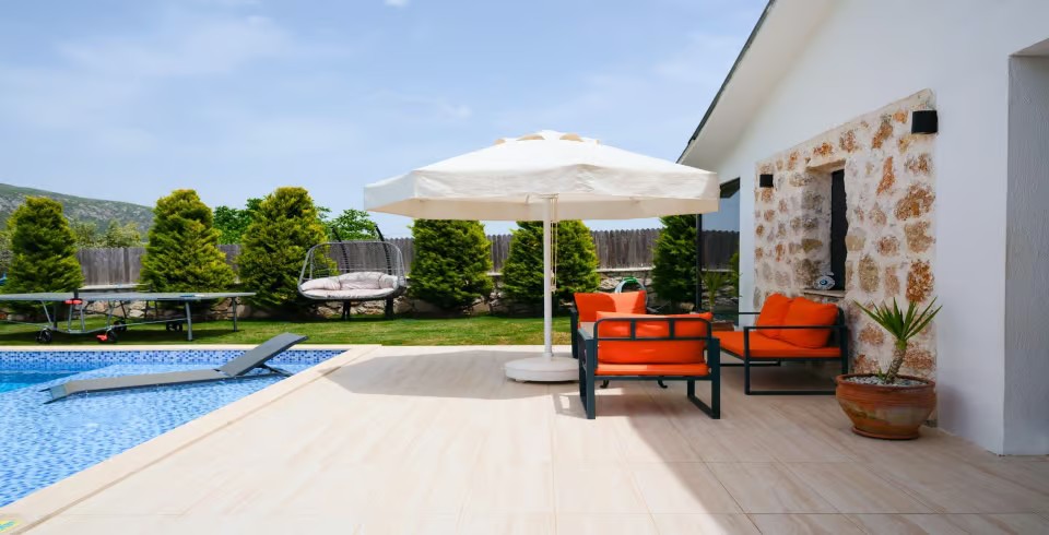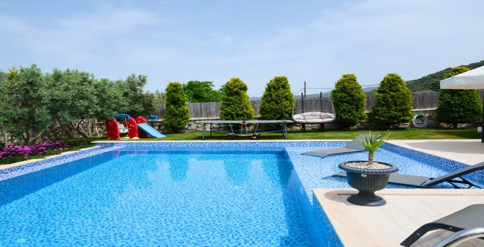 Havuz ve Bahçe: Özel yüzme havuzu, şezlong, şemsiye, salıncak, bahçe mobilyaları, yemek masası, barbekü bulunmaktadır.