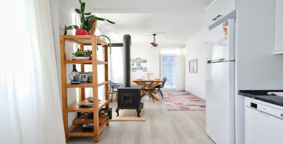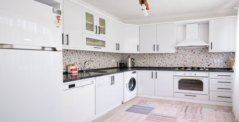 Mutfak: Açık planlı mutfak, 4 kişiye yetecek kadar mutfak malzemeleri, buzdolabı, fırın, ocak, mikrodalga fırın, bulaşık makinesi, çamaşır makinesi, tost makinesi, kettle ve çaydanlık bulunmaktadır..