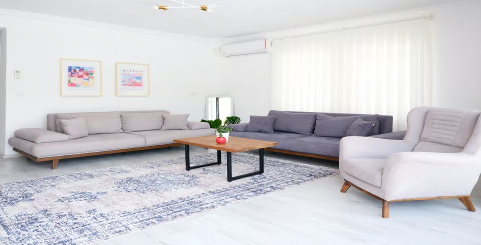 Salon: Özenle döşenmiş salon, modern koltuklar, 4 kişilik yemek masası, LCD TV  ve klima bulunmaktadır.