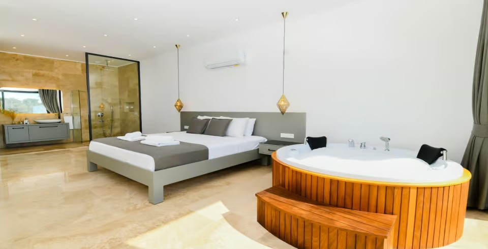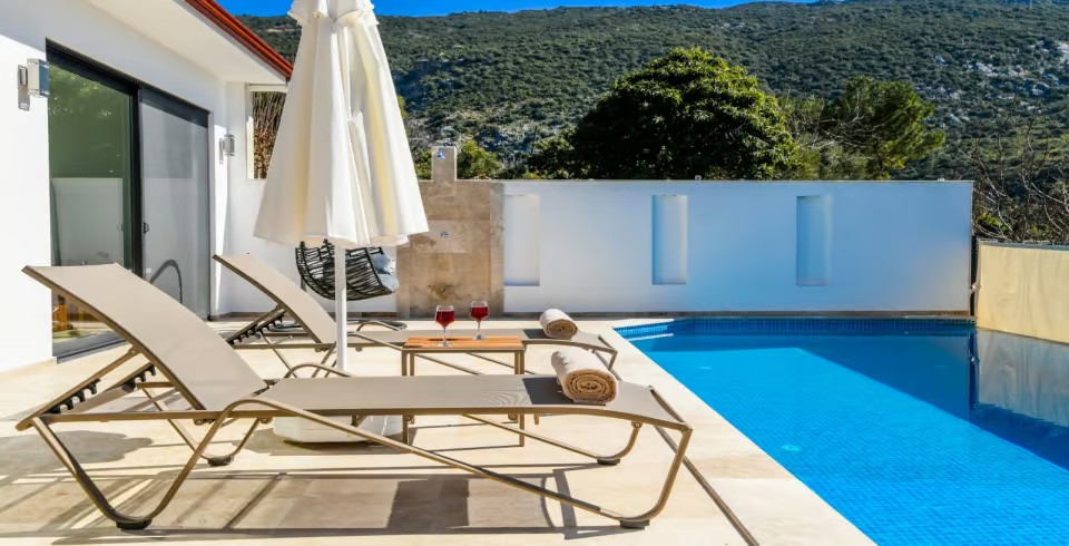 Villa Gala 2, Kalkan İslamlar bölgesinde konumlanmaktadır. Güzel ve unutulmaz anılar biriktirmek isteyen çiftler, sizi Villa Gala 2'ye davet ediyoruz: sizlere ve sevdiğiniz kişiye özel tasarlanmış bu villada, hayalinizdeki balayını gerçeğe dönüştürme fırsatını bulacaksınız. Özellikle 2 kişilik kapasitesiyle romantik ve huzurlu bir tatil geçirmek isteyen çiftler ve aileler için ideal bir seçenektir, Denizin ve doğanın harmonik buluşması ile şekillenen manzara, huzur içinde zaman geçirme olanağı sunuyor. İçeriği estetik ve zarafetle bezenmiş olan Villa Gala 2, 1 yatak odası, konforlu 1 yatak ve 1 banyo ile minimalist ve fonksiyonel bir yaşam alanı sunuyor. Havuz terası korunaklı hale getirilmiş olan villamız muhafazakar çiftlerimiz için oldukça uygun bir seçimdir.