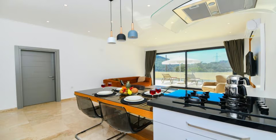 Mutfak : Villamızın mutfağında buzdolabı bulaşık makinası, mikrodalga fırın, tost makinası, kahve makinası, çamaşır makınası,4'lü ocak, kettle, 4 kişilik yemek takımı bulunmaktadır.