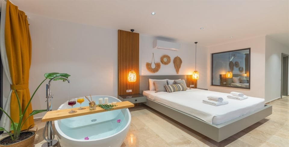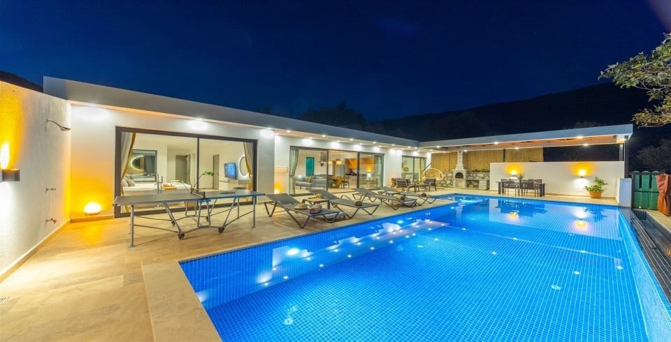 Villa Gala 3, Kalkan İslamlar bölgesinde yer alan 2 yatak odalı ve 4 kişilik konaklama kapasitesine sahip kiralık balayı villasıdır. Villamızın havuzu ve terası korunaklı olup muhafazakar misafirlerimiz için idealdir. Modern eşyalarla tasarlanmış villamızda konforun tadını sevdiklerinizle çıkarabilirsiniz. Villada keyifli zaman geçirebilmeniz için masa tenisi bulunmaktadır.