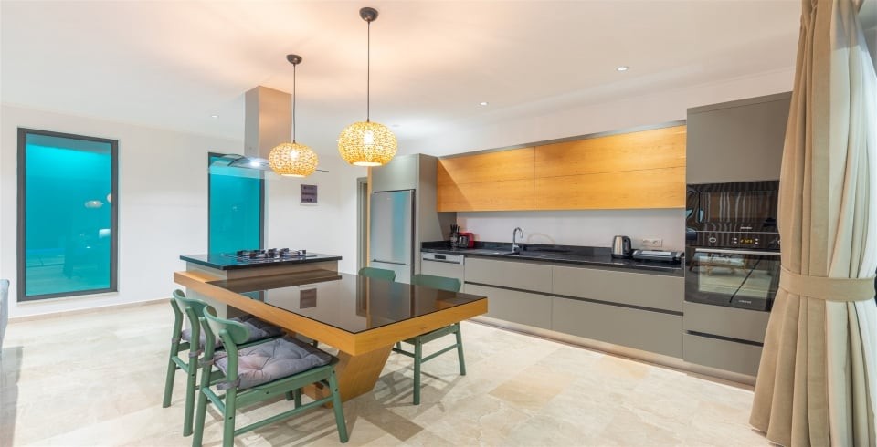 Mutfak : Villamızın mutfağında buzdolabı bulaşık makinası, çamaşır makınası,4'lü ocak, kettle, 4 kişilik yemek takımı bulunmaktadır.
