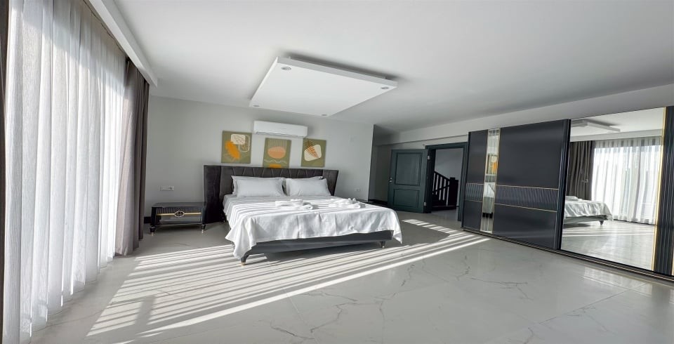 4.Yatak Odası: Çift kişilik yatak, Komodin, Klima, Elbise dolabı, Banyo ve Balkon bulunmaktadır. (Teras Katta)