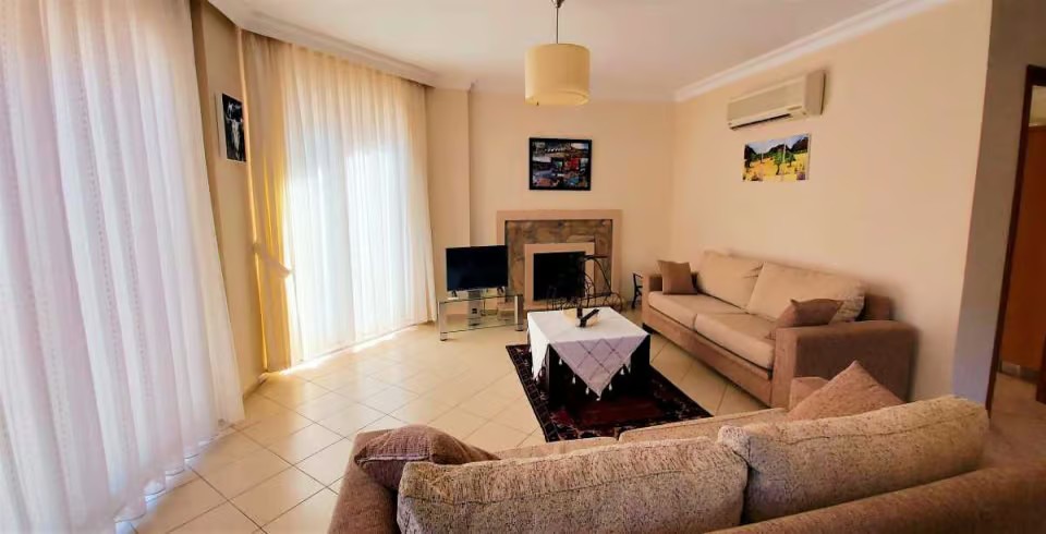 Salon : Salonumuzda oturma grubu,TV, klima, sehpa bulunmaktadır. Havuz terasına çıkış yapılabilmektedir.