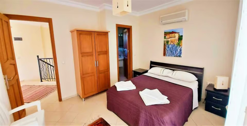 2.Yatak Odası: 1 adet çift kişilik yatak, klima,makyaj masası, elbise dolabı, banyo ve lavabo bulunmaktadır.