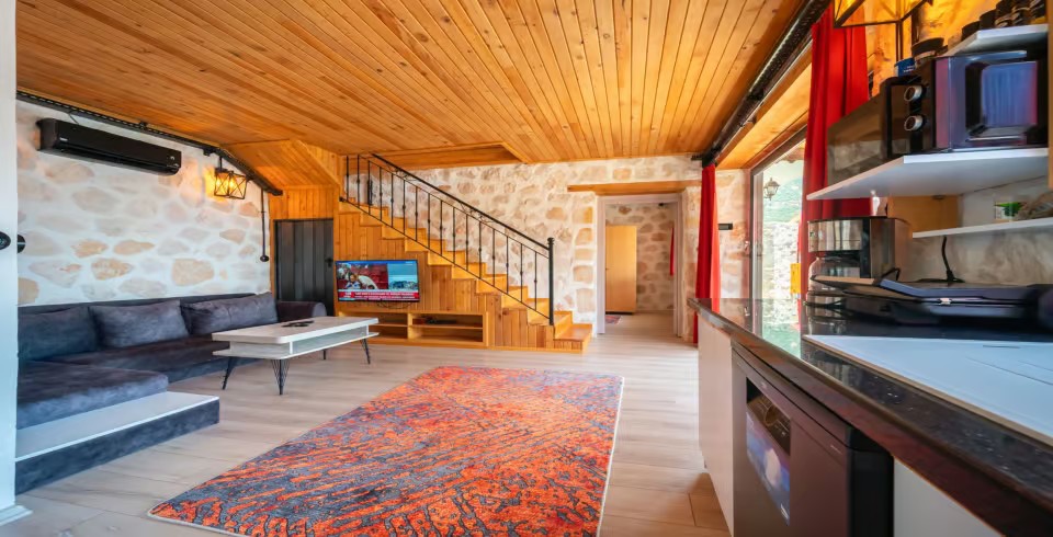 Konum avantajıyla da öne çıkan villa, Kaş merkeze araçla yaklaşık 10 dakika, plaja ise yürüyerek sadece 15 dakika mesafededir. Hem doğayla iç içe sakin bir atmosfer hem de merkeze kolay ulaşım imkânı sayesinde tatiliniz boyunca konfor ve rahatlığı bir arada bulabilirsiniz.