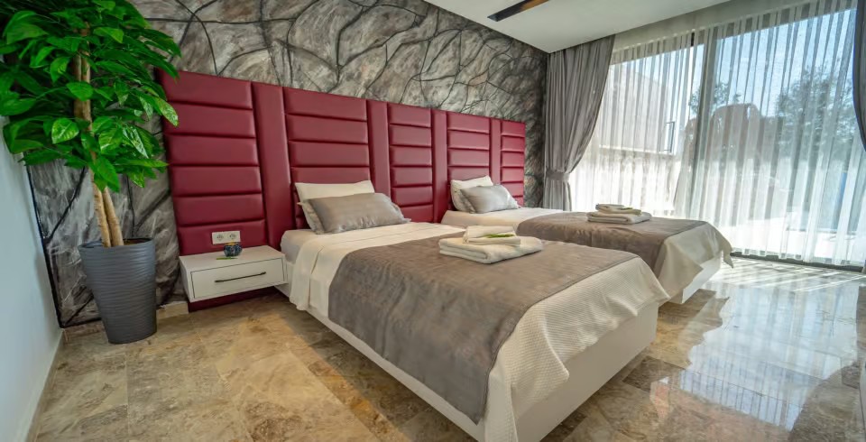 2. Yatak Odası: 2 adet tek kişilik yatak klima, komodin, elbise dolabı, makyaj masası, banyo ve tuvalet bulunmaktadır.