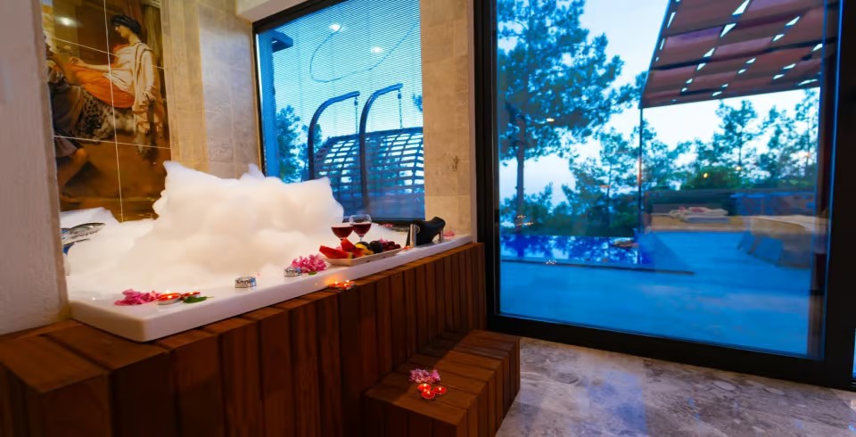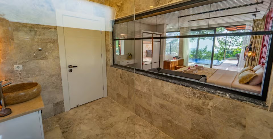 Havuzu korunaklı villalarımızda kesinlikle %100 görünmememe garantisi vermemekteyiz bu villalarımızda her zaman %5 sakınma payı mevcuttur.