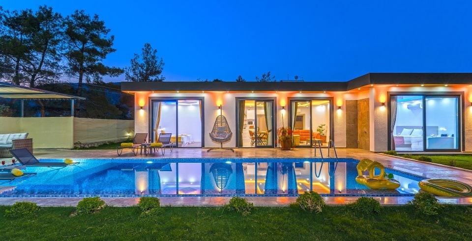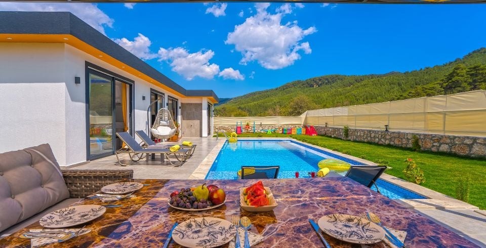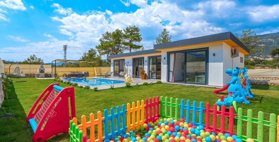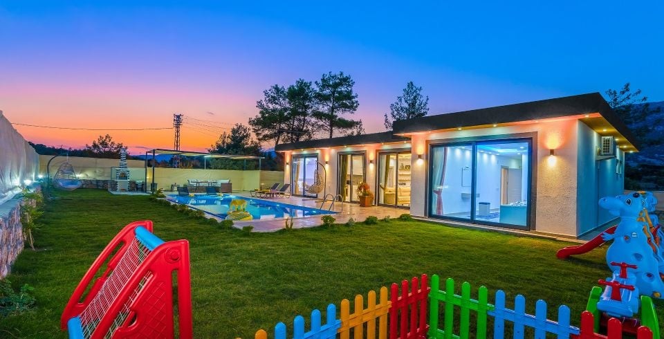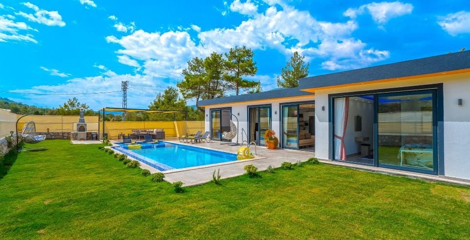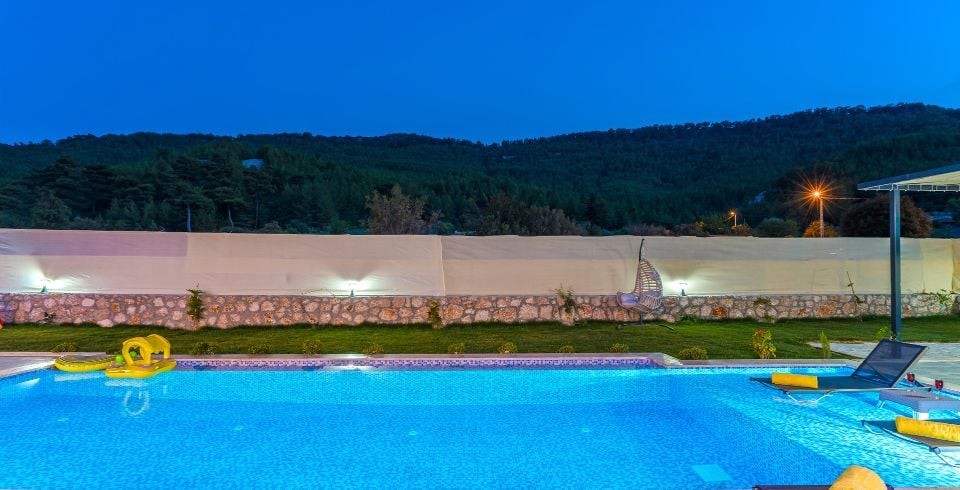 Dış alanda tamamen korunaklı özel havuz, geniş bahçe, çocuk oyun alanı, salıncak, şezlong, barbekü ve yemek alanı yer alır. Sessizliği, mahremiyeti ve doğayı bir arada sunan konumuyla Villa Gökalan; merkeze, plaja, markete ve restoranlara olan ulaşım kolaylığıyla dengeli bir tatil fırsatı sunar. Her yaştan misafir için konforu ve estetiği aynı çatı altında sunar.