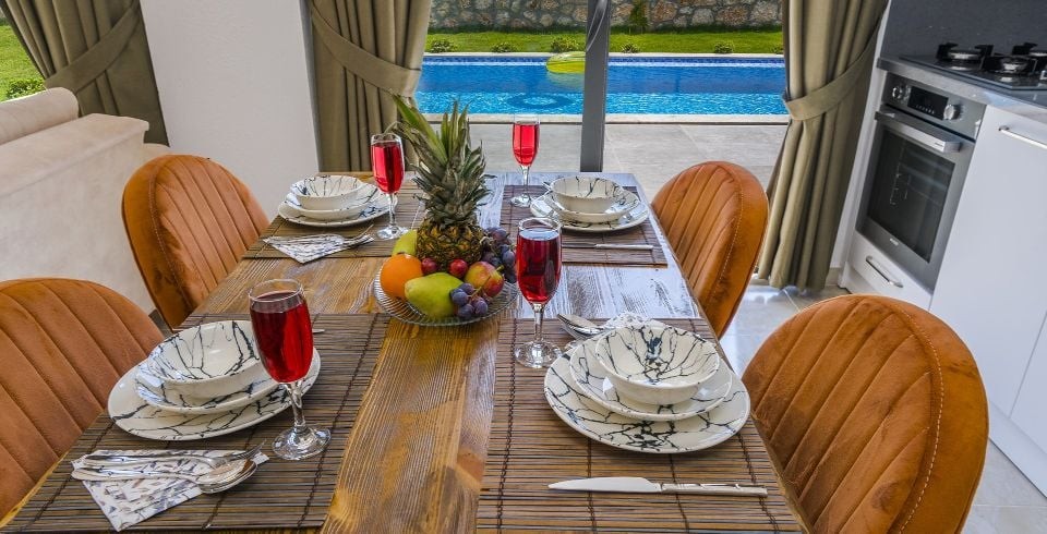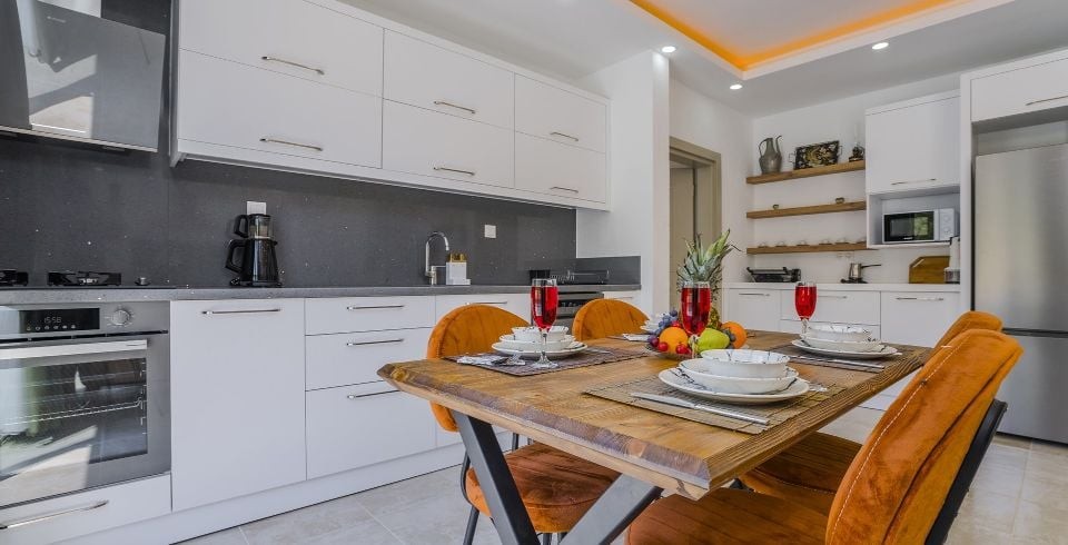 Mutfak: Villamızın mutfağında buzdolabı bulaşık makinası, çamaşır makinası, 4'lü ocak, ketıl, mikro dalga fırın, türk kahvesi makinesi,tost makinesi ve yemek takımı bulunmaktadır.