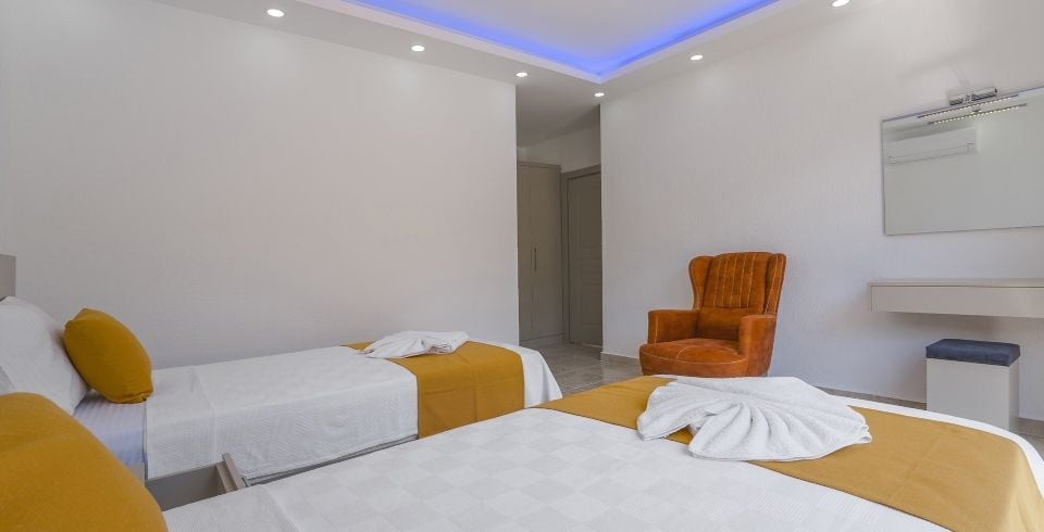 2. Yatak Odası: 2 adet tek kişilik yatak komodin, elbise dolabı, makyaj masası, banyo ve tuvalet bulunmaktadır.