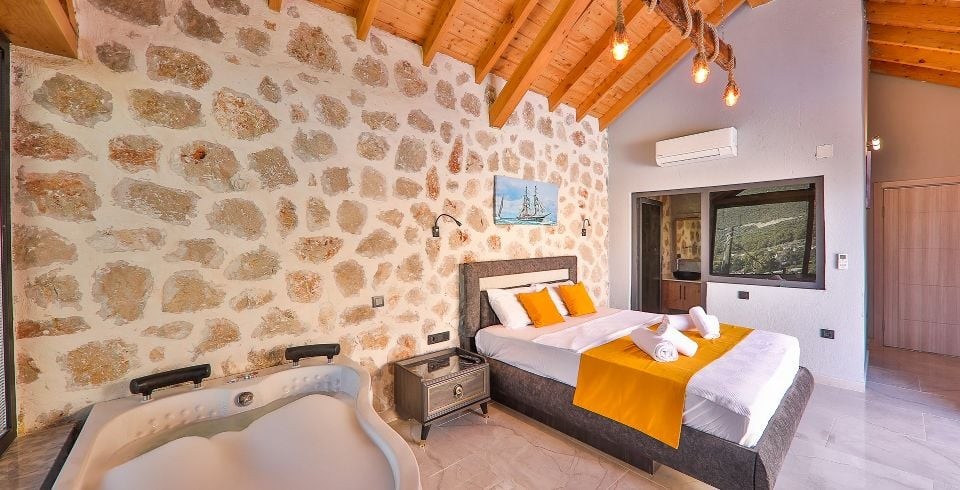 1. Yatak Odası : Çift kişilik yatak ,klima, komodin, elbise dolabı, jakuzi, makyaj masası  banyo ve tuvalet bulunmaktadır.