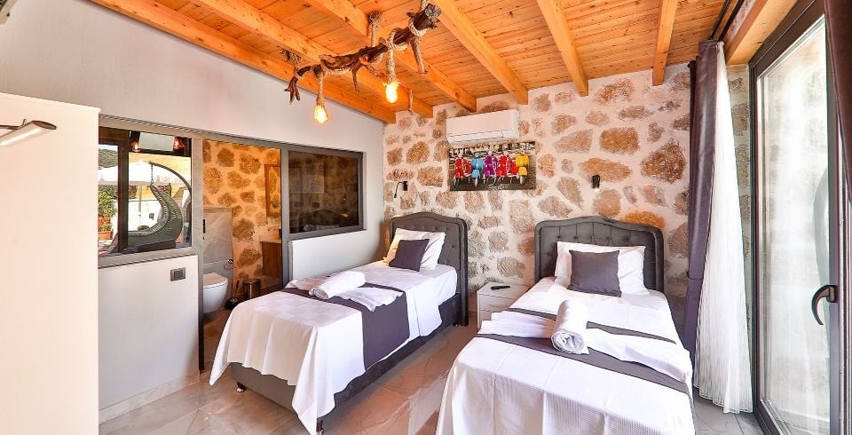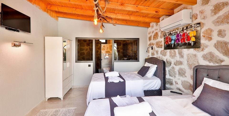 2. Yatak Odası :  2 adet tek kişilik yatak, klima, elbise dolabı, komodin, makyaj masası, banyo ve tuvalet bulunmaktadır.