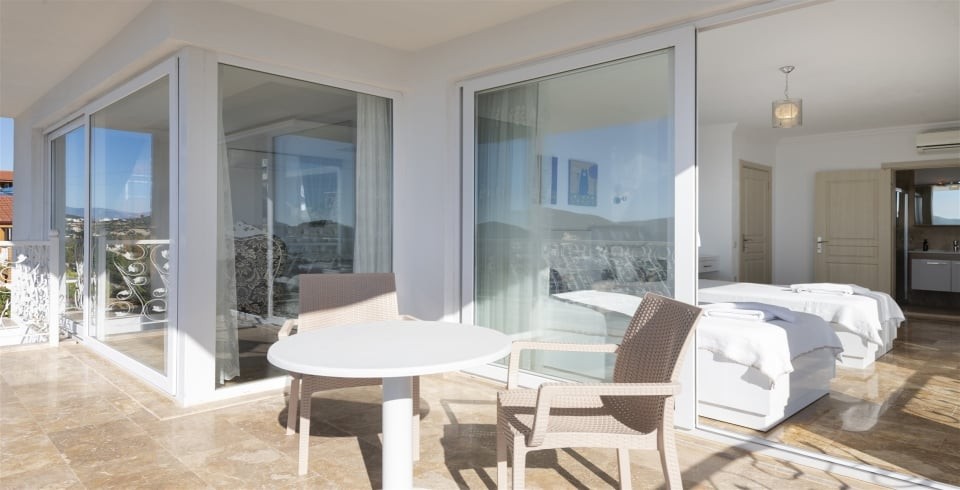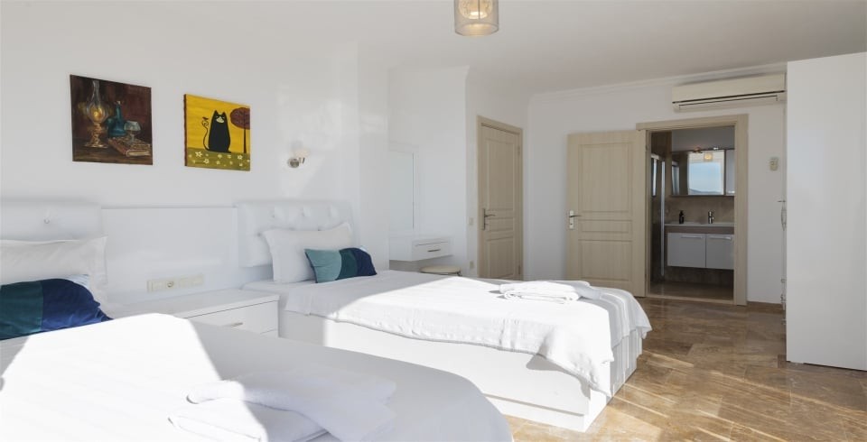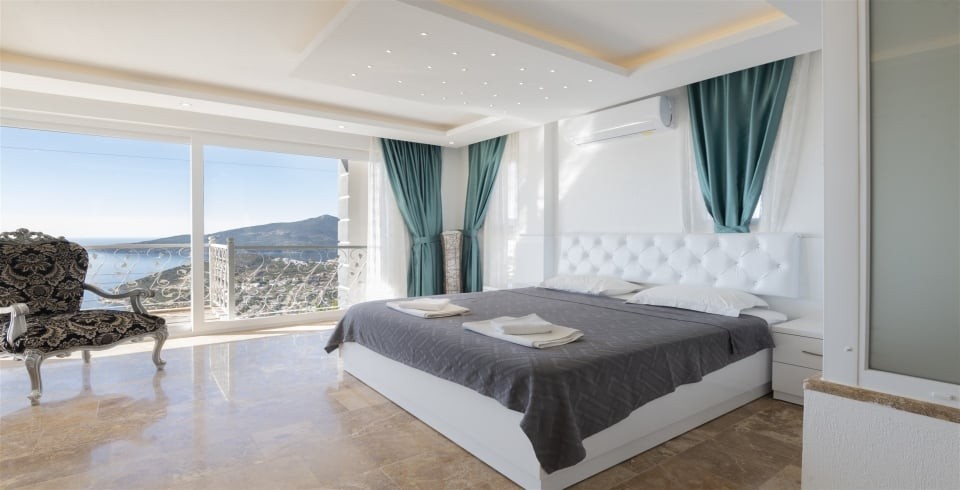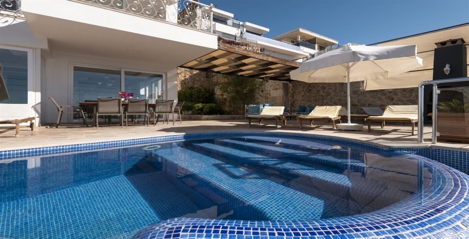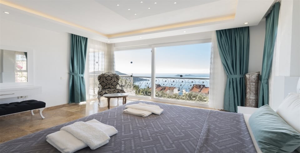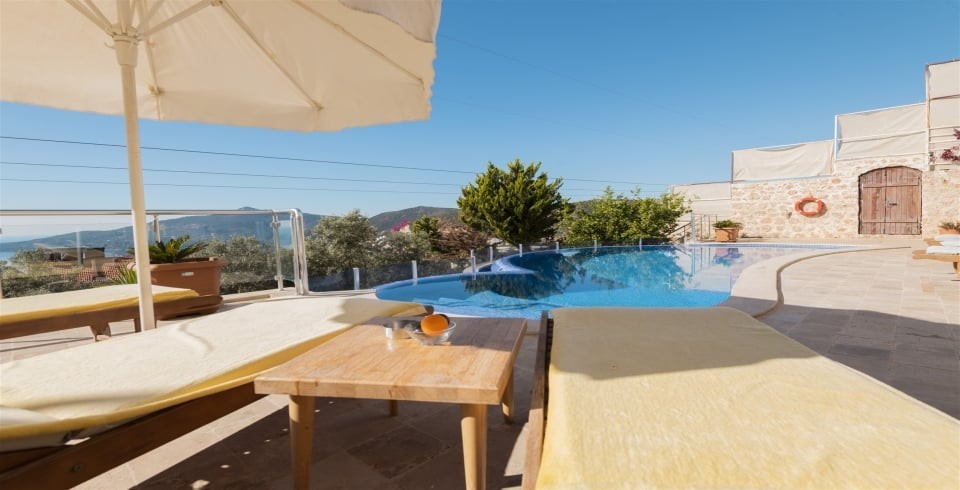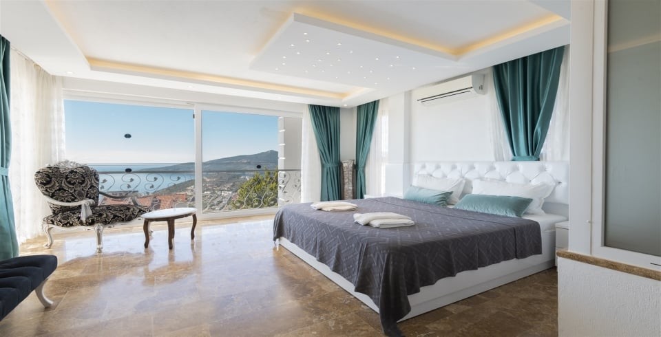 Villamız Kalkan Kızıltaş mevkisin de konumlanmış, deniz manzaralı 4 yatak odalı 8 kişilik lüks villadır. Özel yüzme havuzu ile birlikte şehrin eşsiz  manzarası ve gün batımı görünümlü deniz manzarası olan villamızın içerisinde  jakuzi bulunmaktadır. Sonsuzluk havuzu le birlikte kalkanın meşhur adalarını görünmektedir.