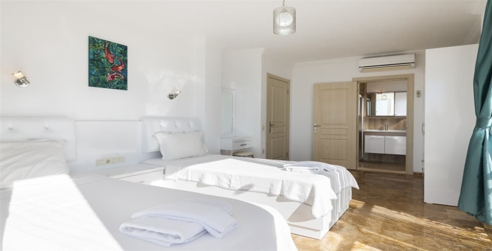4. Yatak Odası : 2 adet tek kişilik yatak, komodin, klima, elbise dolabı, makyaj masası, banyo ve lavabo bulunmaktadır.