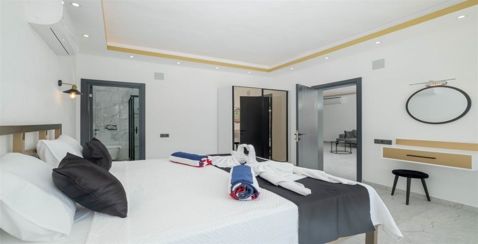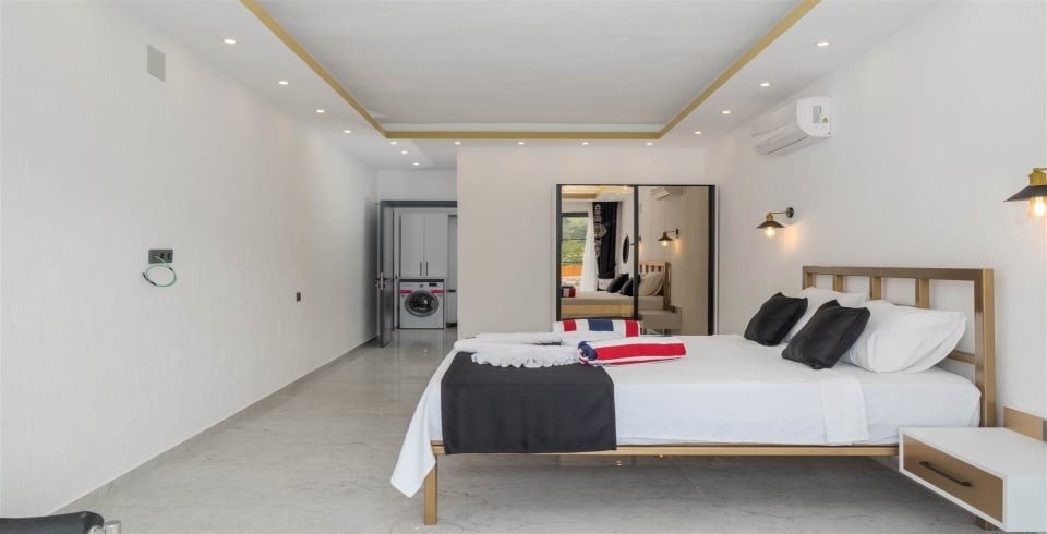 2. Yatak Odası : 1 adet çift kişilik yatak, klima, komodin, elbise dolabı, makyaj masası, banyo ve tuvalet bulunmaktadır.