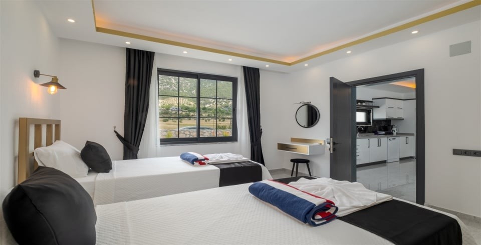 3. Yatak Odası : 2 adet tek kişilik yatak, klima, komodin, elbise dolabı, makyaj masası, banyo ve tuvalet bulunmaktadır.
