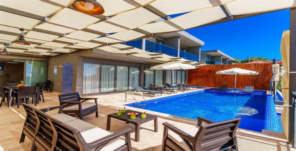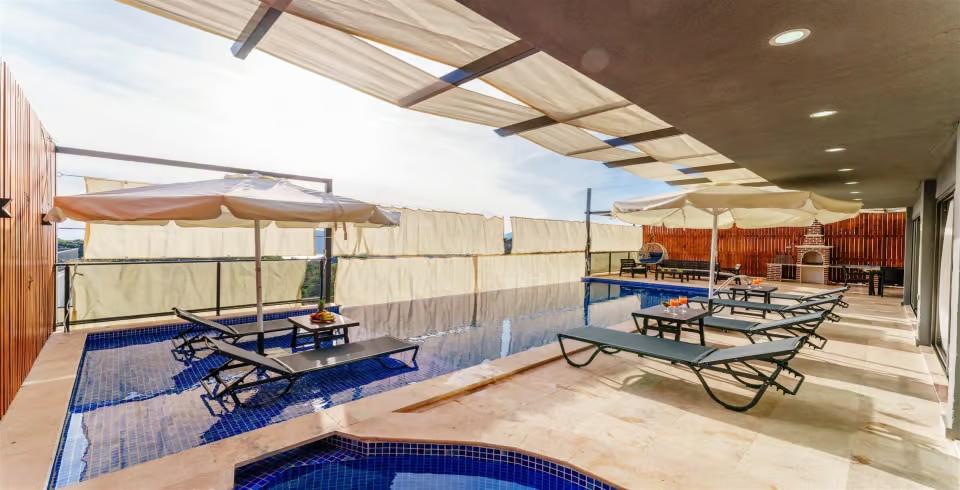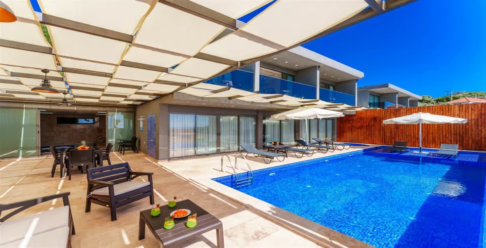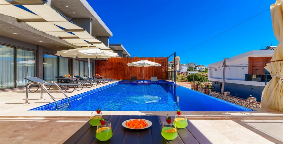 Villa Grand Emora 2, Kalkan Kördere bölgesinde yer alan 2 katlı, 4 yatak odalı, 8 kişi konaklama kapasitesine sahip, sauna ve hamamın da yer aldığı villamız özenle dizayn edilmiş olup kalabalık aileler ya da arkadaş grupları için en ideal bir seçim olacaktır. 11 metrelik geniş havuza sahip olmanın yanı sıra  kapalı ısıtmalı iç havuzu da kış ayları için harika bir ayrıcalık sağlamaktadır.