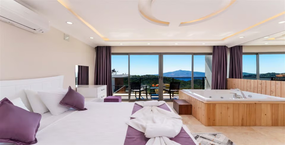 2. Yatak Odası : Çift kişilik yatak, komodin, klima, balkon, jakuzi, TV, makyaj masası, banyo ve lavabo bulunmaktadır.