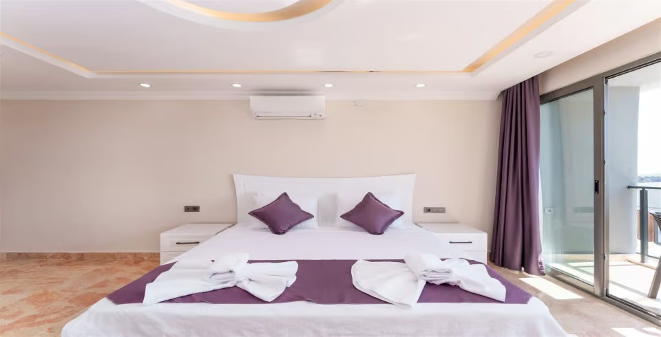 4. Yatak Odası : Çift kişilik yatak, komodin, klima, balkon, TV, makyaj masası, banyo ve lavabo bulunmaktadır.