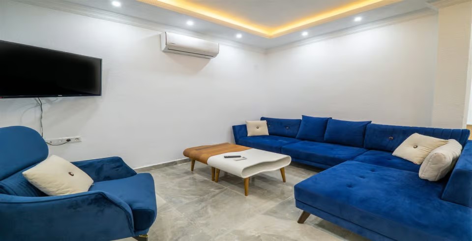 Salon : Salon içerisinde oturma grubu, TV, klima, sehpa, bulunmaktadır.