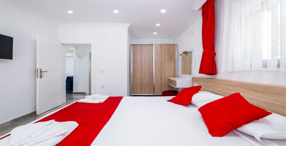 3. Yatak Odası : 2 adet tek kişilik yatak, klima, komodin, elbise dolabı, makyaj masası, TV, banyo ve tuvalet bulunmaktadır.