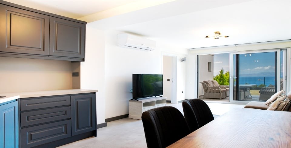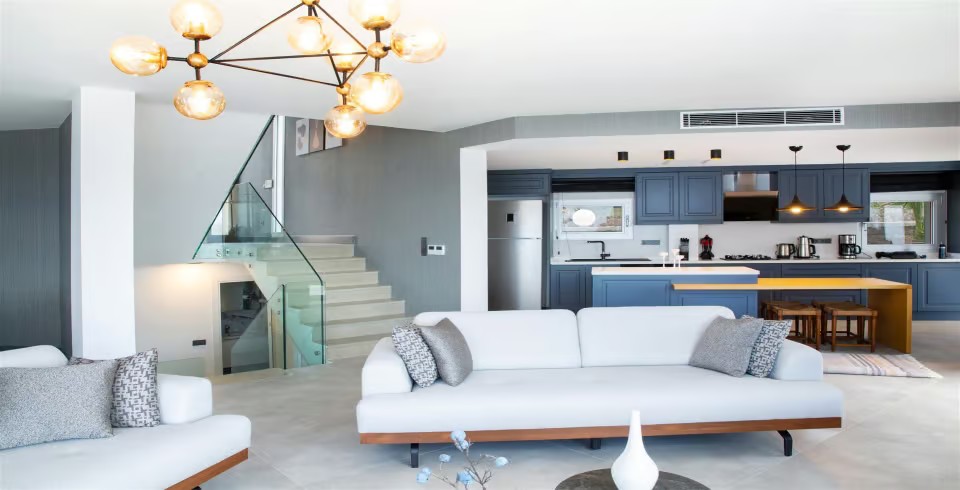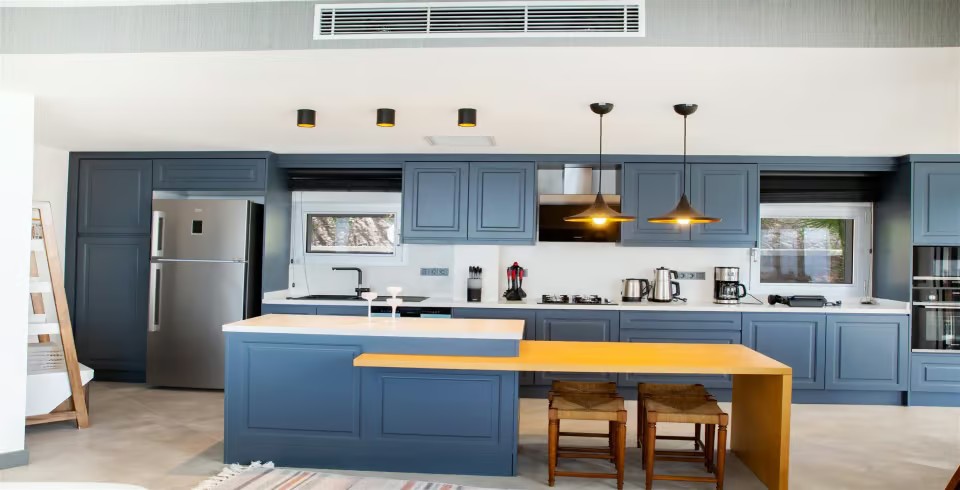 Mutfak : Geniş Amerikan mutfak, klima, yemek masası, buz dolabı, bulaşık makinası, çamaşır makinası, ankastre fırın, 4'lü ankastre ocak, kettle, tost makinesi bulunmaktadır.