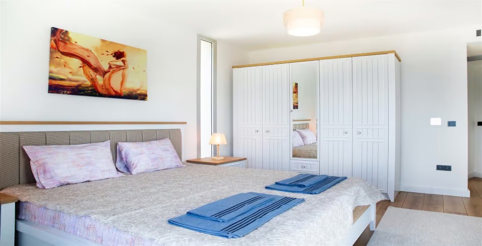 5. yatak odası : 1 adet çift kişilik yatak, klima, elbise dolabı bulunmaktadır.