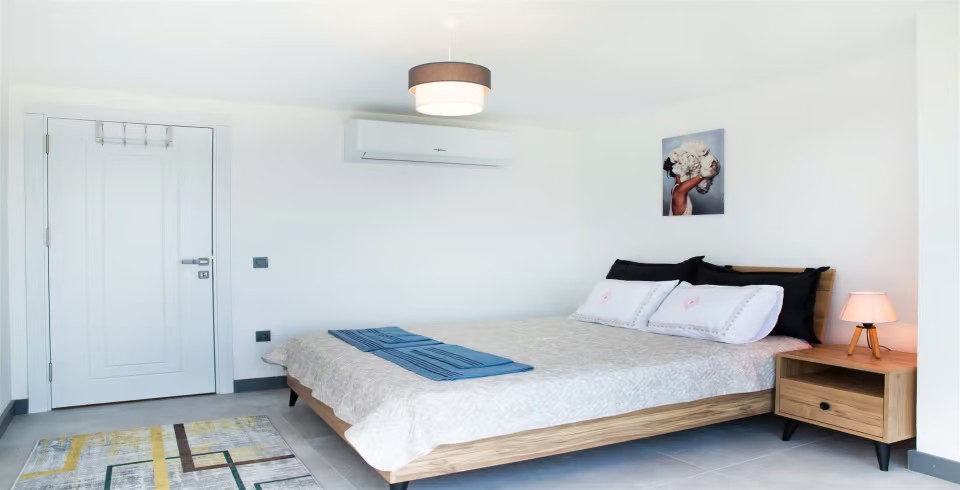 4. yatak odası : 1 adet çift kişilik yatak, klima, elbise dolabı bulunmaktadır.