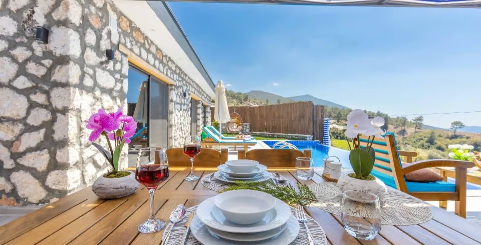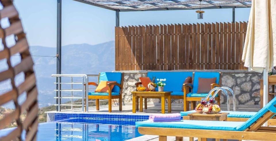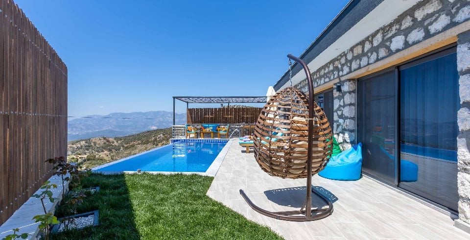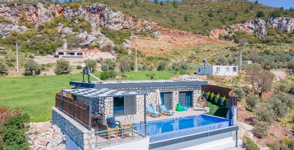 Villa Günbatımı Aklar Antalya Kaş Çavdır mahallesinin Aklar mevkiinde bulunmaktadır. villamız 2022 yılında inşaatını tamamlamış olup 1 yatak odalı , 2 kişilik konaklama kapasitesine sahiptir. Doğa ve panoramik deniz manzarası ile size gözlerden uzak huzurlu bir villa tatil için bu villamızı rahatlıkla tercih edebilirsiniz. Muhafazakar havuz terasına sahip bu villamız balayı çiftlerimizin favori villası olmak için hazır. Gözden uzak huzur dolu villamıza sizleri de bekleriz.