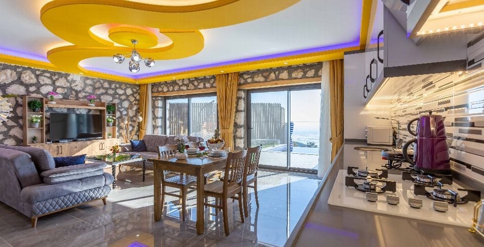Salon: Oturma grubu, klima, TV, yemek masası, orta sehpa ve banyo tuvalet bulunmaktadır.