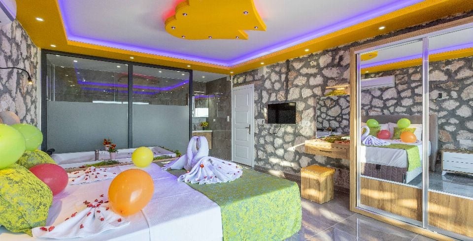 1.Yatak Odası: Çift kişilik yatak, klima, jakuzi, komodin, elbise dolabı, makyaj masası, banyo ve tuvalet bulunmaktadır.